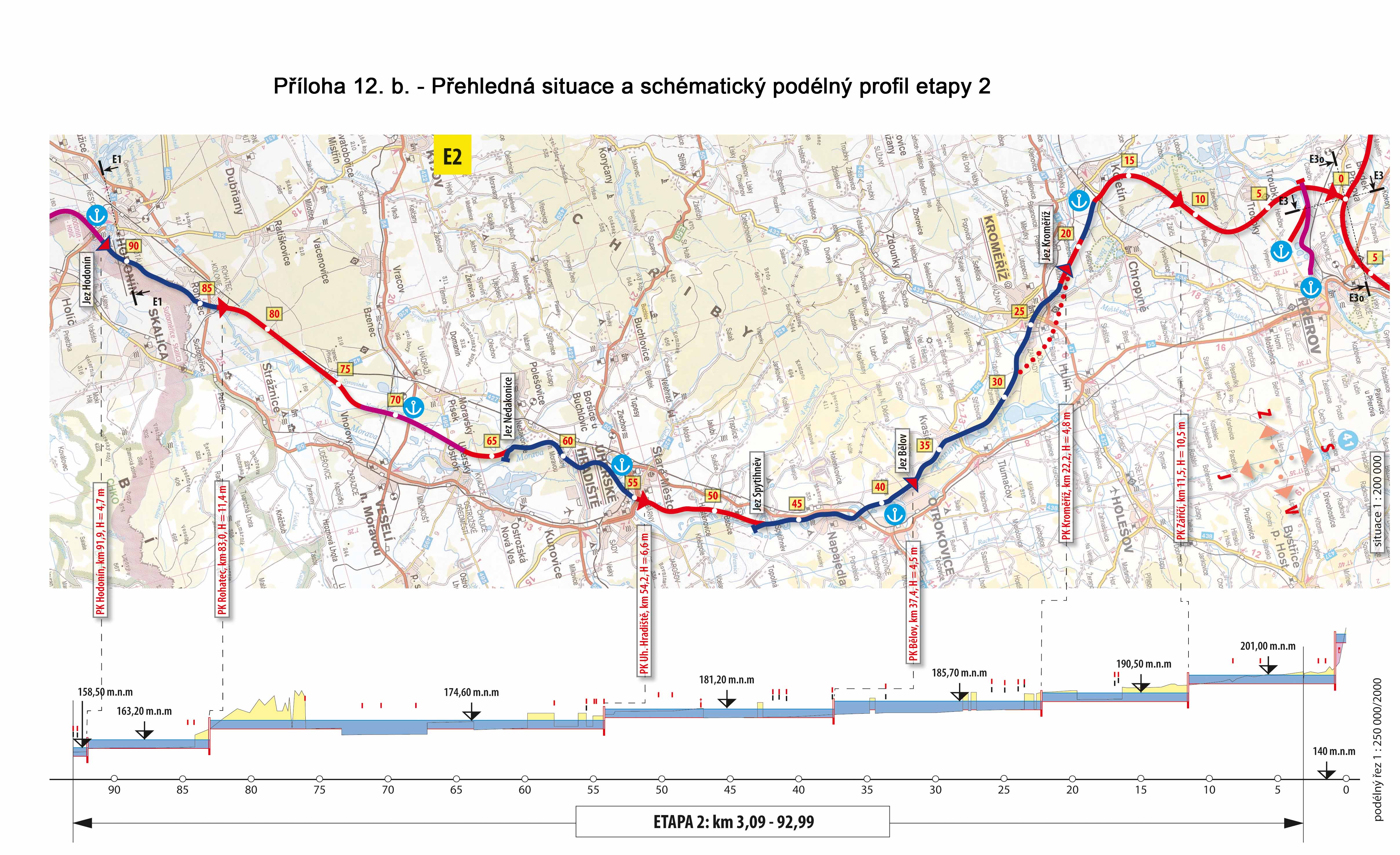 Příloha 12b - Přehledná situace a schématický podélný profil etapy 2