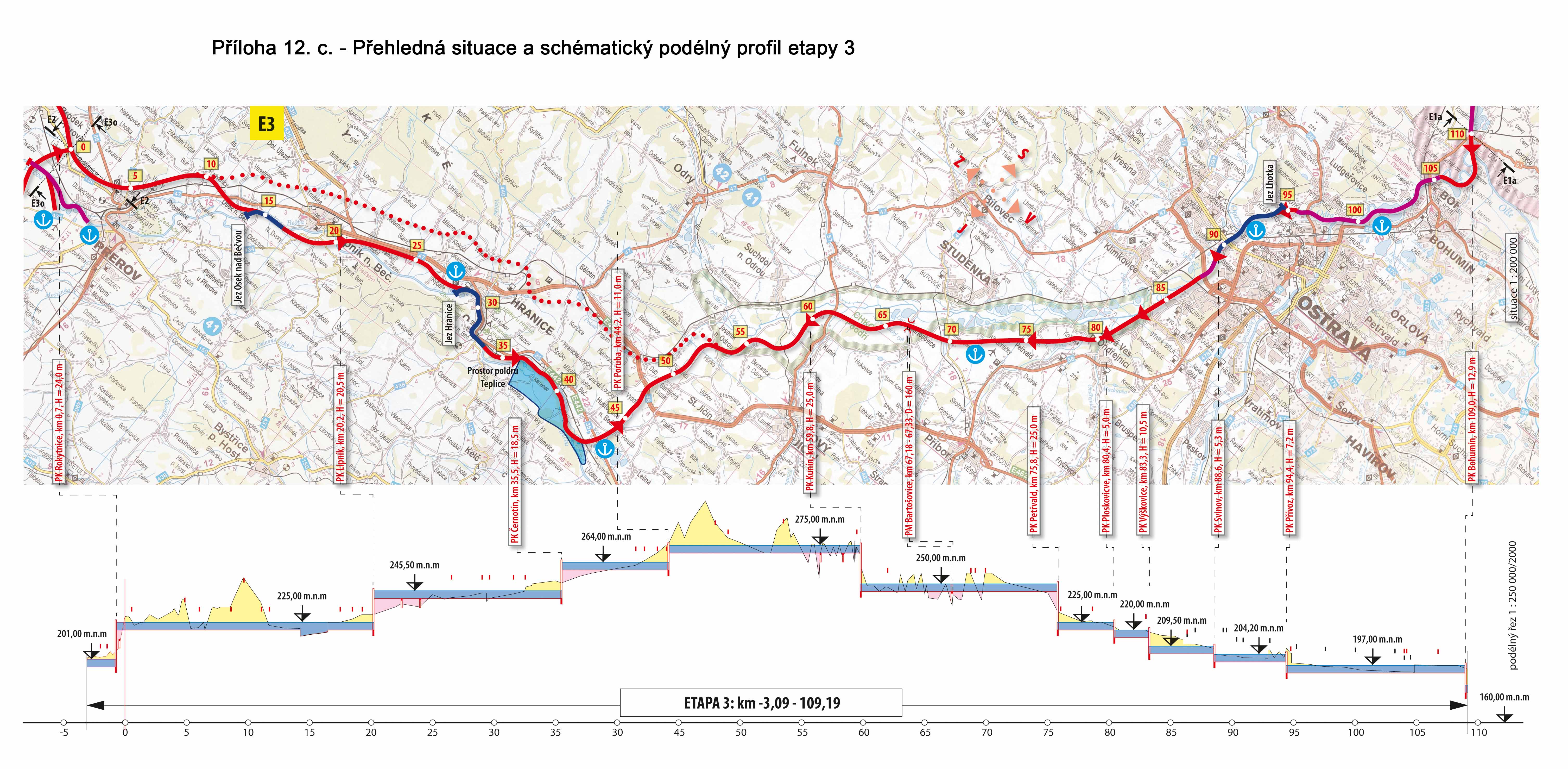 Příloha 12c - Přehledná situace a schématický podélný profil etapy 3