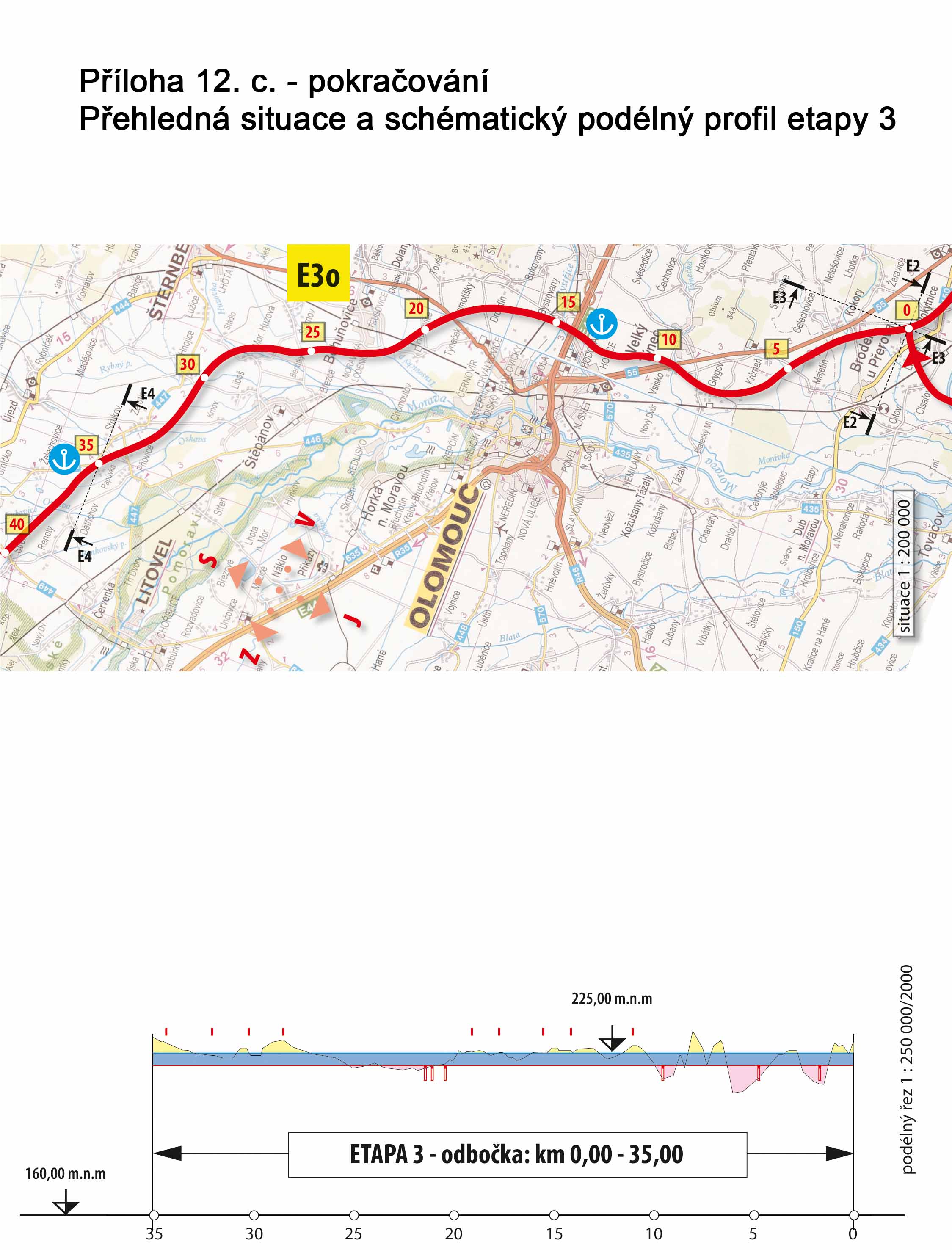 Příloha 12c - Přehledná situace a schématický podélný profil etapy 3 - odbočka do Olomouce